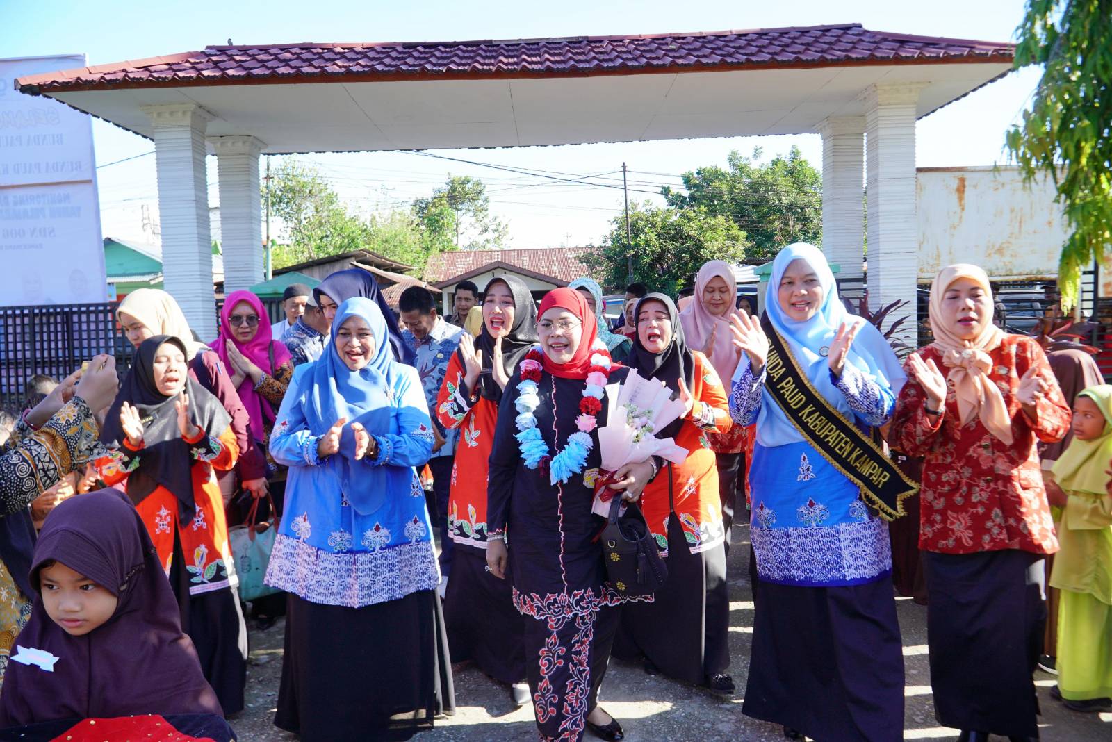 Dalam kunjungan yang dihadiri oleh Penjabat Bupati Kampar Hambali, SE, MH, Kepala Dinas Dikpora Kabupaten Kampar H. Aidil, SH, M.Si, Plt. Ketua DWP Kabupaten Kampar T. Yani Ahmad Yuzar, Perwakilan Dinas PPKBP3A Kabupaten Kampar, Perwakilan Dinas Kesehatan Kabupaten Kampar, Forum PAUD Kabupaten Kampar, Ketua IGTKI Provinsi Riau, Mitra Paud Provinsi Riau dan seluruh Organisasi Mitra PAUD Kabupaten Kampar itu berlangsung meriah sebab kehadirannya disambut oleh siswa-siswi UPT SD Negeri 006 Langgini sambil bernyanyi “selamat datang bunda”.